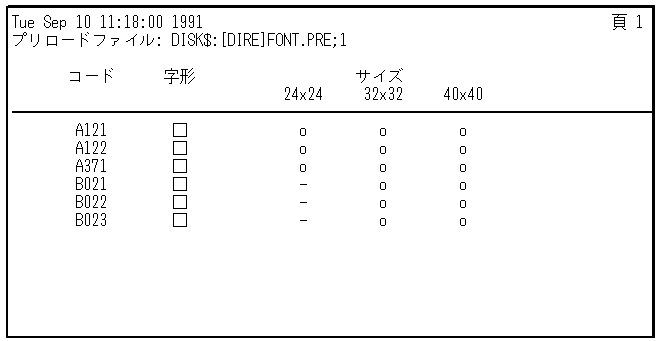 図 4-9 例2のコマンドによって作成された文字コード・テーブル