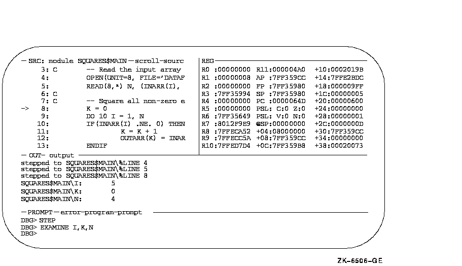 DBG> SELECT/INPUT/ERROR/SCROLL ZIP