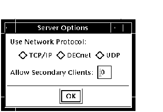 「Server Options」ダイアログでは,新規のセッションで使用できるセカンダリ・ クライアントの数(0〜31)を選択することもできます。