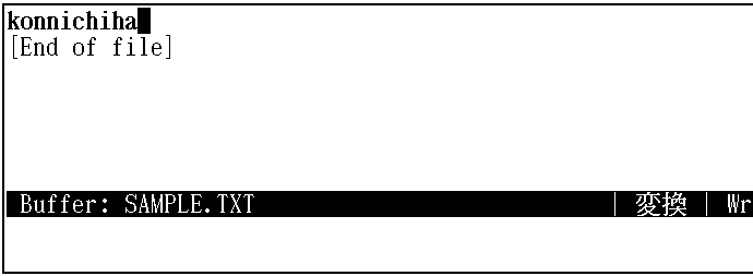 入力文字列は,高輝度表示されています。 この状態で,[Ctrl/L] ([Ctrl]キーを押しながら,[ L ]キーを押す)を押します。 konnichihaがひらがな変換されます。