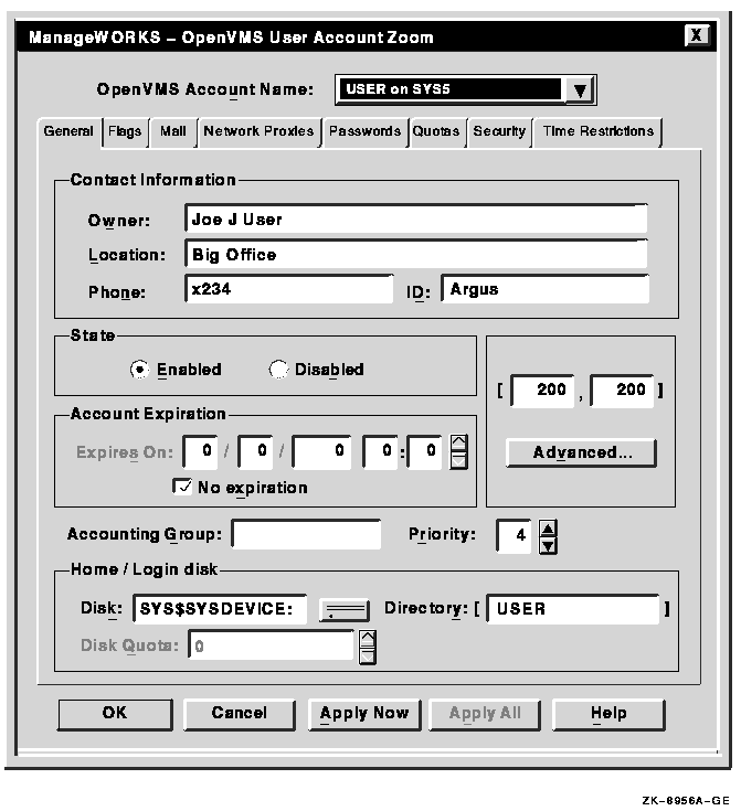 OpenVMS Management Stationを使用すると,OpenVMSユーザ・アカウントをきわめて簡単に管理することができます。 たとえば,複数システム上でアカウントを作成する場合,OpenVMS Management Station は,利用者登録ファイル(UAF) エントリの追加,ライト識別子の付与,OpenVMSディレクトリの作成, ディスク・クォータの設定,OpenVMS Mail特性の設定などの処理を, アカウントの各インスタンスごとに行います。