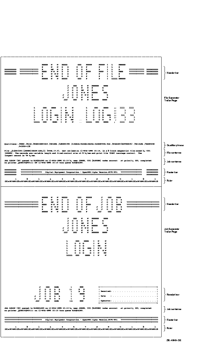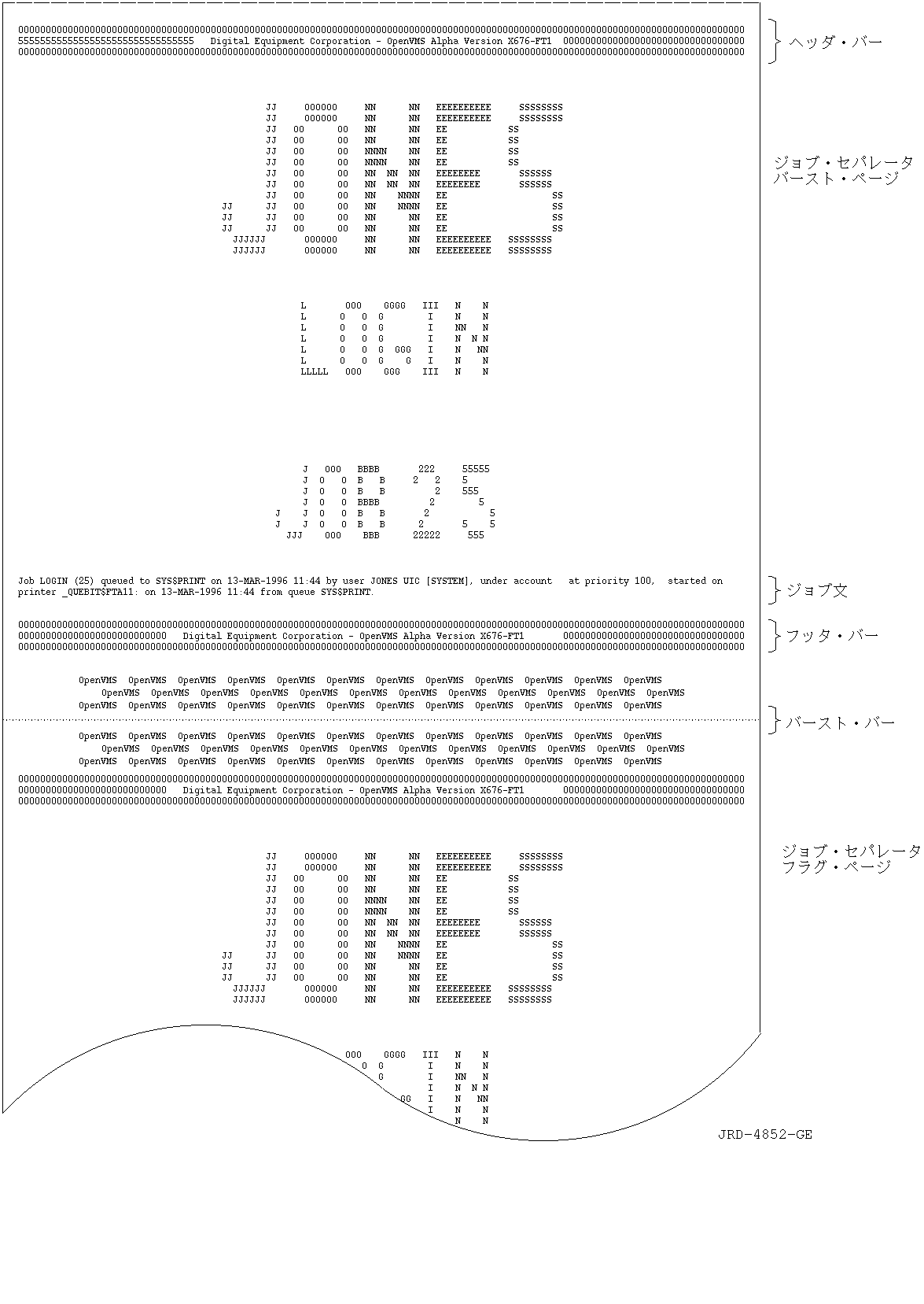 図 13-2の例のSYS$BATCHは省略時のキューです。 通常のバッチ・ジョブはこのキューに登録されます。FASTキューは, メモリからスワップされることがない優先順位の高いジョブを実行します。SLOW は,優先順位の低いジョブを処理するためのバックグラウンド・ キューです。これらは物理メモリを大量に必要とする大きいジョブです。