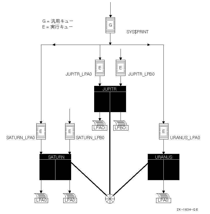OpenVMS Clusterのキュー構成については,『OpenVMS Cluster Systems』を参照してください。 汎用キューの作成方法については, 第13.4.3項を参照してください。