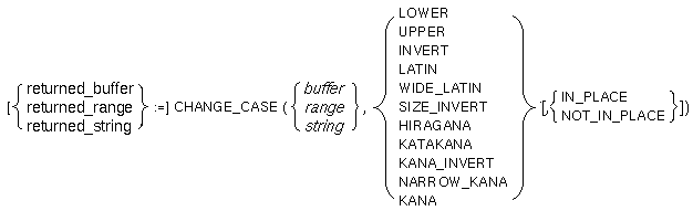この組込みプロシージャは, ASCII文字からDEC漢字セットの特殊記号文字および罫線文字の変換およびコード変換を行います。 これは日本語OpenVMSかな漢字変換ライブラリを使っています。 変換対応表については,『日本語ライブラリ 利用者の手引き』の付録Bを参照してください。