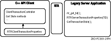 Legacy applications do not have a TransactionController but with the RTRServerTransactionProperties and RTRClientTransactionProperties classes, you need only a TID (transaction identifier) to get state information. You obtain the TID with the existing RTR C API using the rtr_get_tid method. You can pass this TID into the RTRServerTransactionProperties and RTRClientTransactionProperties classes.
