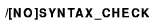 The /SYNTAX_CHECK qualifier causes VAX BASIC to perform syntax checking after each program line is typed. If you specify /NOSYNTAX_CHECK, VAX BASIC does not perform syntax checking after each program line is typed. The default is /NOSYNTAX_CHECK.