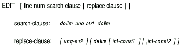 The EDIT command allows you to edit individual program lines in the VAX BASIC Environment while invoking an editor. Entering EDIT with no arguments invokes a text editor and reads the current program into the editor's buffer.