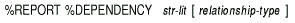 - The %REPORT %DEPENDENCY directive creates a dependency relationship in the dictionary between the compiled module entity for the program and the CDO-format dictionary entity to which it refers.