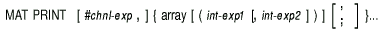 The MAT PRINT statement prints the contents of a one- or two-dimensional array on your terminal or assigns the value of each array element to a record in a terminal-format file.