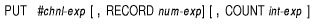 The PUT statement transfers data from the record buffer to a file. PUT statements are valid on RMS sequential, relative, and indexed files. You cannot use PUT statements on terminal-format files or virtual array files.