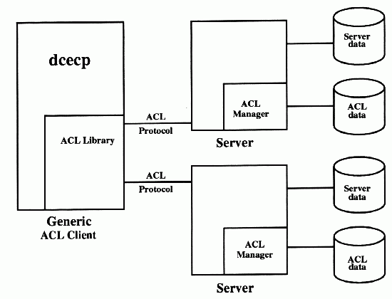 The client side allows you to connect to any server exporting the ACL interface so that one program can manipulate all ACLs. The DCE control program uses this feature.