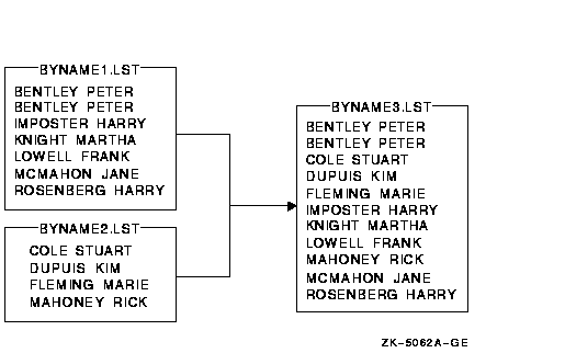 $ MERGE BYNAME1.LST,BYNAME2.LST BYNAME3.LST |