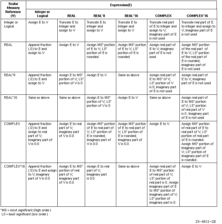 Figure 3-1 summarizes the data conversion rules for assignment statements. Remember that REAL*16 and COMPLEX*16 are language extensions.