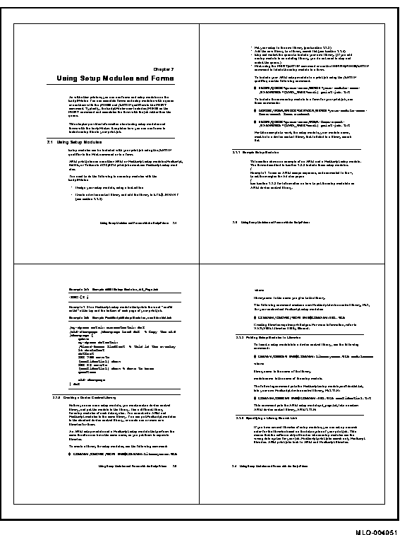 ユーザは必要なレイアップ定義ファイルを作成し,マージン,ページの位置, ページ境界を指定するためのオプションを登録し,このファイルをシステム論理名DCPS$LAYUP によって定義されるディレクトリに登録するようにシステム管理者に依頼することができます。