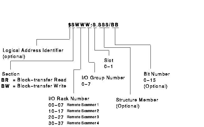 Figure 3-34 shows the structure of a legal Block-Transfer Read/Write Control data table address for the PLC-5/250. Figure 3-35 shows a PLC-5/250 Block-Transfer Read/Write Control structure.