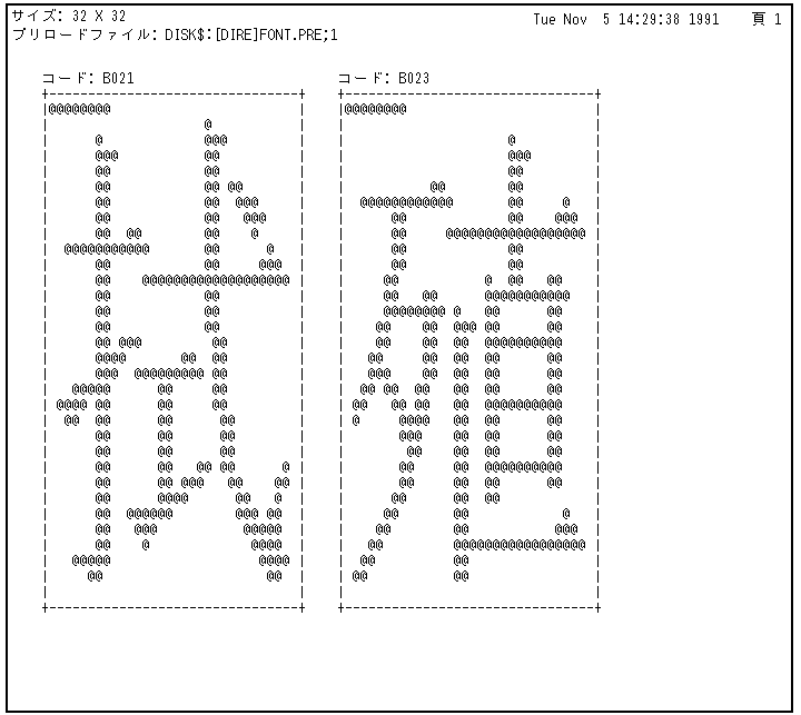 図 4-3 例1のコマンドによって表示されたビットマップ形式の文字パターン
