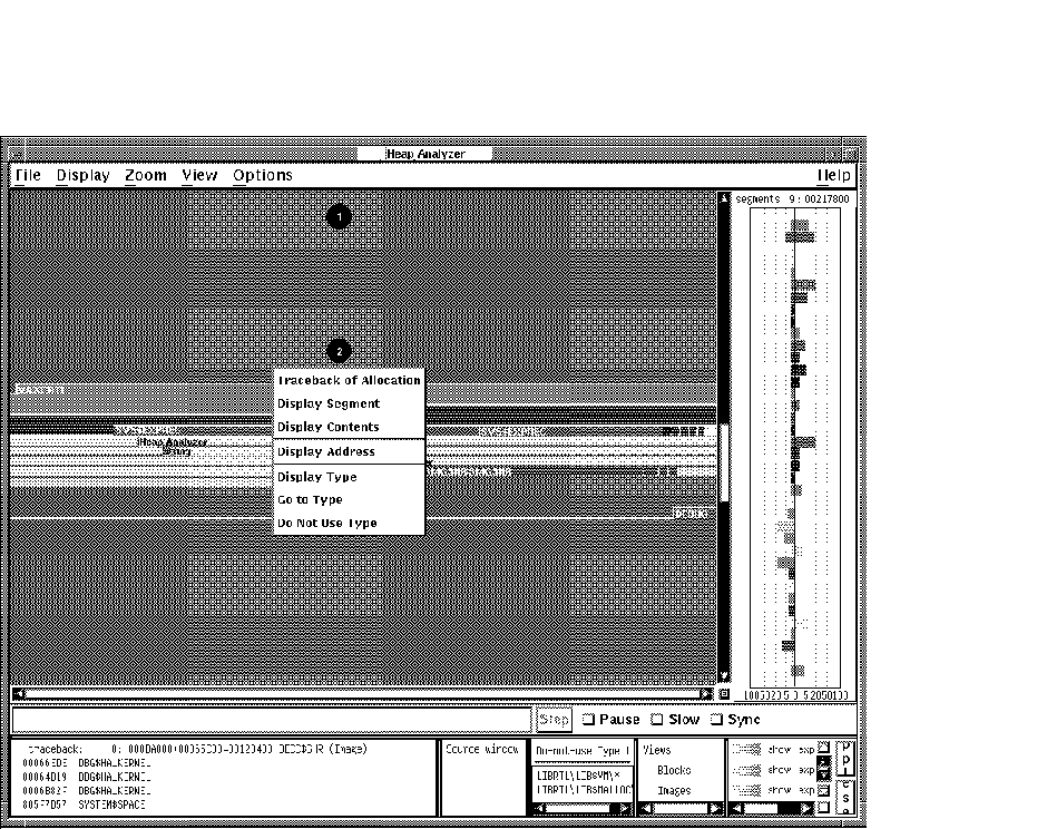 6.「Views- and-Types」ディスプレイ ヒープ・アナライザが認識しているセグメント・ タイプの一覧を表示する。セグメント・ディスプレイの変更も行う。