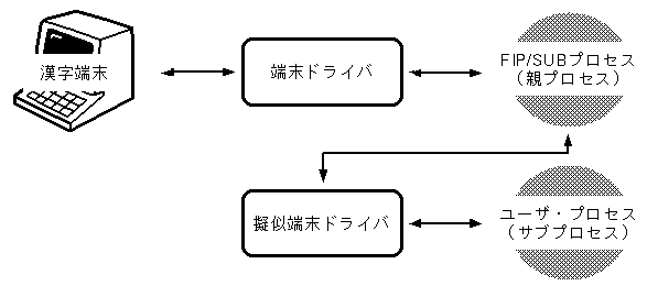 図 5-2 FIP/SUB起動時の端末での入出力機構