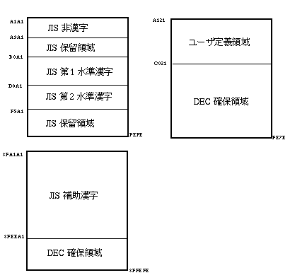 | DEC拡張漢字 | (1xxxxxxx 0xxxxxxx) | A121 - FE7E |