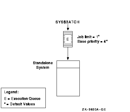 SUBMITコマンドでバッチ・ジョブがキュー登録された場合,省略時の設定では, ジョブはSYS$BATCHというキューに登録されます。スタンドアロン型システムで省略時のキューを1 つだけ設定する場合,キューの名前はSYS$BATCH にしてください。