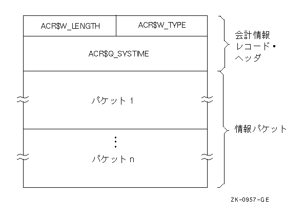すべての情報パケットは,ACR$W_LENGTHフィールドとACR$W_TYPE フィールドで構成されるパケット・ヘッダで始まります。表 C-5 表 C-6を参照してください。