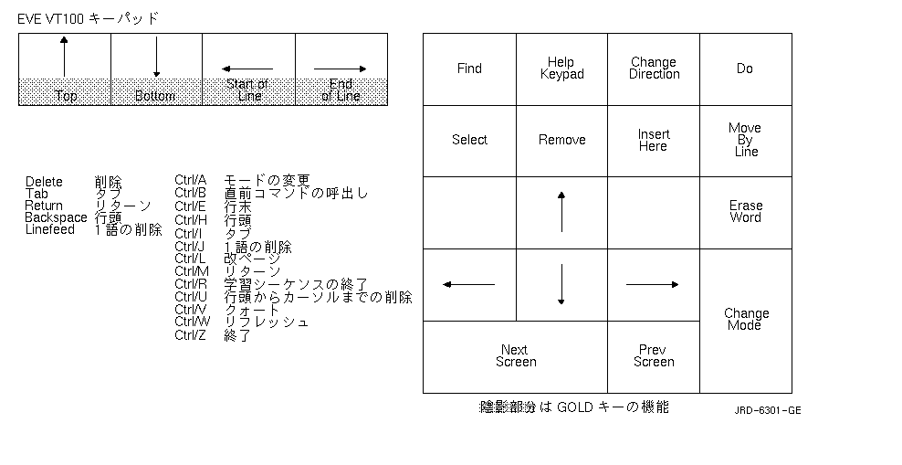 VT100¥·¥ê¡¼¥º¡¦¥¿¡¼¥ß¥Ê¥ë¤Ç¤Ï¡¤EVE¤Ï¡¤¤Û¤È¤ó¤É¤Î¿ôÃÍ¥­¡¼¥Ñ¥Ã¥É¡¦¥­¡¼¡¤4 ¤Ä¤ÎÌð°õ¥­¡¼¡¤¤ª¤è¤Ó¥³¥ó¥È¥í¡¼¥ë¡¦¥­¡¼¤Î¥·¡¼¥±¥ó¥¹¤ò¼«Æ°Åª¤ËÄêµÁ¤·¤Þ¤¹¡£ ¿Þ 8-2¤Ï¡¤VT100¥·¥ê¡¼¥º¡¦ ¥¿¡¼¥ß¥Ê¥ë¤ÎÄêµÁºÑ¤ß¥­¡¼¤ò¼¨¤·¤Æ¤¤¤Þ¤¹¡£