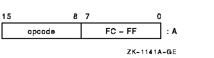 The opcode may extend over 2 bytes; the length depends on the contents of the byte at address A. If, and only if, the value of the byte is FC (hex) to FF (hex), the opcode is 2 bytes long.