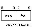 For operands of data type F_floating, G_floating, D_floating, and H_floating, the 6-bit literal field is composed of two, 3-bit fields. These fields are illustrated in the following diagram, where exp is exponent and fra is fraction:
