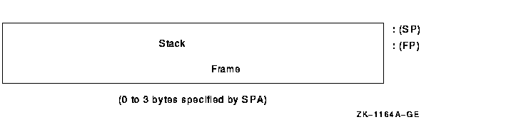 To preserve the state, the CALL instructions form a structure on the stack termed a call frame or stack frame. The call frame contains the saved registers, the saved PSW, the register save mask, and several control bits. The frame also includes a longword that the CALL instructions clear. The system uses this longword to implement the OpenVMS condition handling facility (see the VAX Procedure Calling and Condition Handling Standard in the OpenVMS Programming Interfaces: Calling a System Routine). At the end of execution of the CALL instruction,the frame pointer (FP) contains the address of the stack frame. The RET instruction uses the contents of FP to find the stack frame and the restore state. The condition handling facility assumes that FP always points to the stack frame.