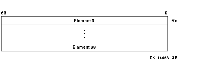 There are 16 vector registers, V0 to V15. Each vector register contains 64 elements numbered 0 to 63. Each element is 64 bits wide. Figure 10-1 depicts a vector register.