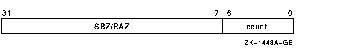 The 7-bit Vector Count Register (VCR), shown in Figure 10-4, receives the length of the offset vector generated by the IOTA instruction.