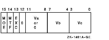 The scalar src or vector operand Va is combined, elementwise, using the specified Boolean function, with vector register Vb and the result is written to vector register Vc. Only bits <31:0> of each vector element participate in the operation. Bits <63:32> of the elements of Vb are written into bits <63:32> of the corresponding elements of Vc. The length of the vector is specified by the Vector Length Register (VLR).