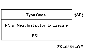 (hex), and the PC and the PSL are pushed onto the current stack.