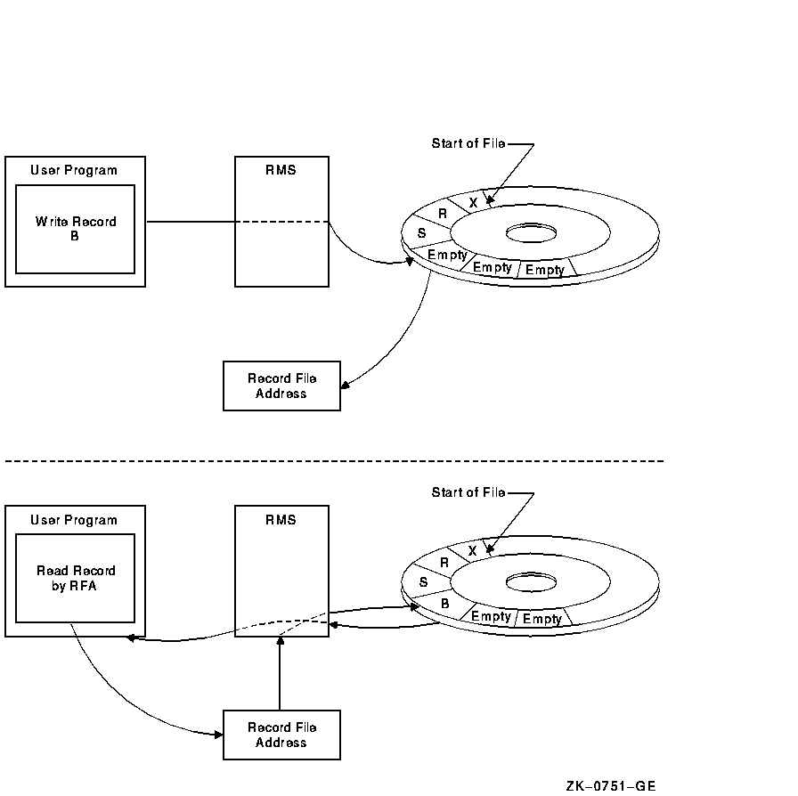 Every record on disk has a unique file address---the record file address (RFA)---that provides another way to randomly retrieve records in all types of file organizations.