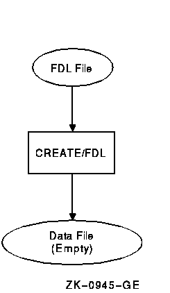 Figure 1-14 shows how the CREATE/FDL utility creates empty data files from the specifications in an FDL file.