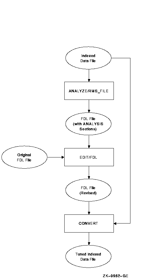 There are two ways to tune files. You can redesign your FDL file to change file characteristics or parameters. You can change these characteristics either interactively with the Edit/FDL utility (the preferred method) or by using a text editor. With the redesigned FDL file, then, you can create a new data file.